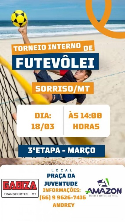 3.ª etapa de Torneio Interno de Futevôlei será no sábado, 18