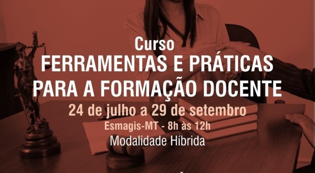 A Escola Superior da Magistratura de Mato Grosso (Esmagis-MT) informa que estão abertas as inscrições para o curso “Ferramentas e Práticas para a Formação Docente”, destinado aos magistrados(as) do Poder Judiciário de Mato Grosso e aos parceiros da Esmagis, como os integrantes da Polícia Judiciária Civil, Corpo de Bombeiros Militar e Polícia Militar.