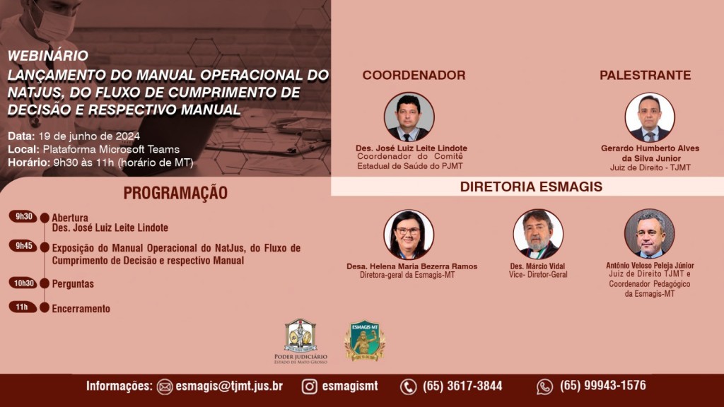 Outras informações podem ser obtidas pelo e-mail esmagis@tjmt.jus.br ou pelos telefones (65) 3617-3844 / 99943-1576.