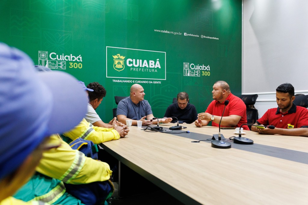 O prefeito Abilio Brunini comandou uma mesa de negociação entre a empresa MD Terceirizações e seus funcionários, responsáveis por serviços de limpeza e zeladoria na capital, na tarde desta sexta-feira (17).