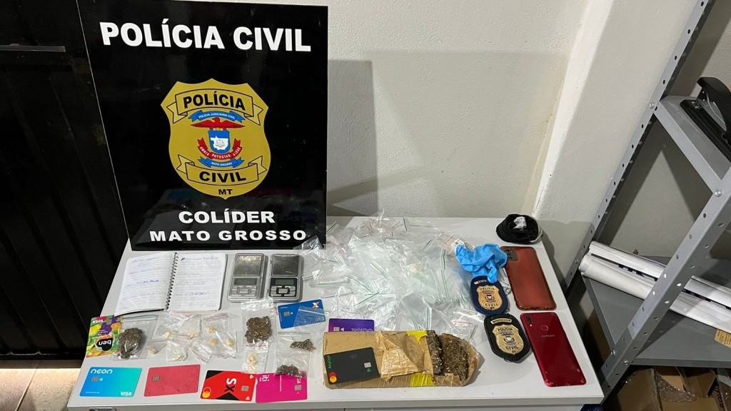 A Delegacia da Polícia Civil de Colíder cumpriu nesta quinta-feira (29.02) um mandado de busca e apreensão contra investigado por tráfico de drogas, que resultou em duas prisões em flagrante e apreensão de um tablete de maconha, porções pequenas da mesma droga e de pasta base e balanças de precisão.