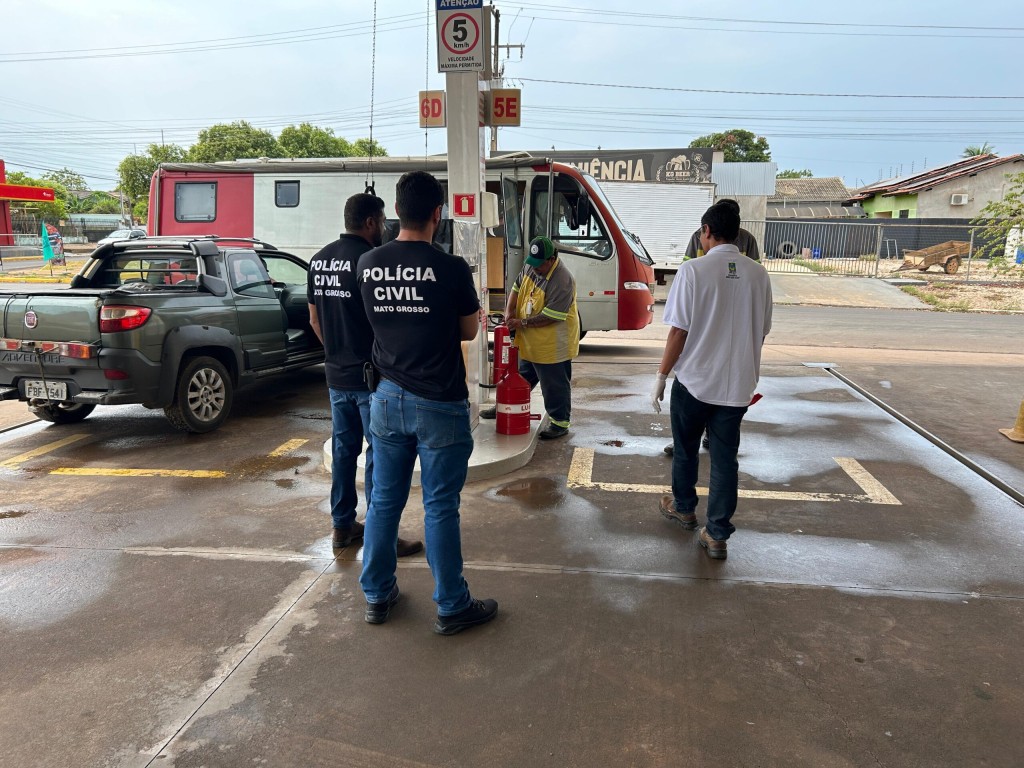 Doze postos de combustíveis em funcionamento no município de Colíder (650 km ao norte de Cuiabá) foram fiscalizados pela Polícia Civil e pela Agência Nacional do Petróleo, Gás Natural e Biocombustíveis do Brasil.