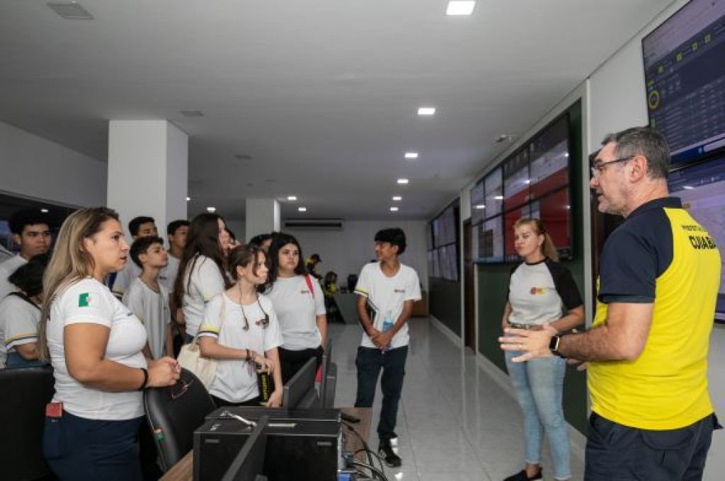 Alunos de uma instituição de ensino do município de Cuiabá, realizaram uma visita à Secretaria de Mobilidade Urbana (Semob), na tarde desta terça-feira (26), para conhecer qual o funcionamento da pasta, desde o setor de Engenharia de Trânsito, Educação no Trânsito, Centro de Controle (CCMob), setor de Transporte, Diretoria de Trânsito, Tecnologia da Informação (TI) e demais.