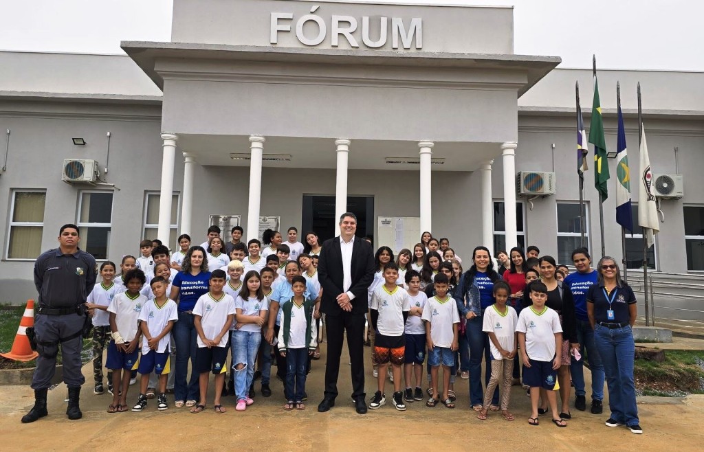 “Os alunos do 4º ano da Escola Municipal aqui de Feliz Natal estão aprendendo acerca da função dos três poderes e houve uma solicitação da escola para uma visita ao fórum. A experiência foi a melhor possível! Além de poder explicar um pouco sobre a função do Poder Judiciário e qual a sua importância dentro da sociedade, essas crianças irão repassar essa importante etapa em sua formação para com todos aqueles de sua convivência, o que demonstra uma aproximação do Judiciário com a sociedade em que atuamos”, comenta o juiz Humberto Resende.