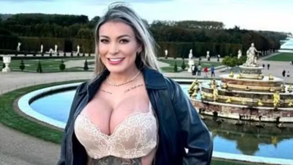 Andressa Urach, de 36 anos, está de viagem pela França na companhia do filho e da nora, e eles conheceram na manhã desta terça-feira (8), o Palácio de Versalhes, residência da realeza francesa no século XVII. Para marcar a visita, a produtora de conteúdo adulto posou com a lingerie à mostra nos jardins do famoso ponto turístico.