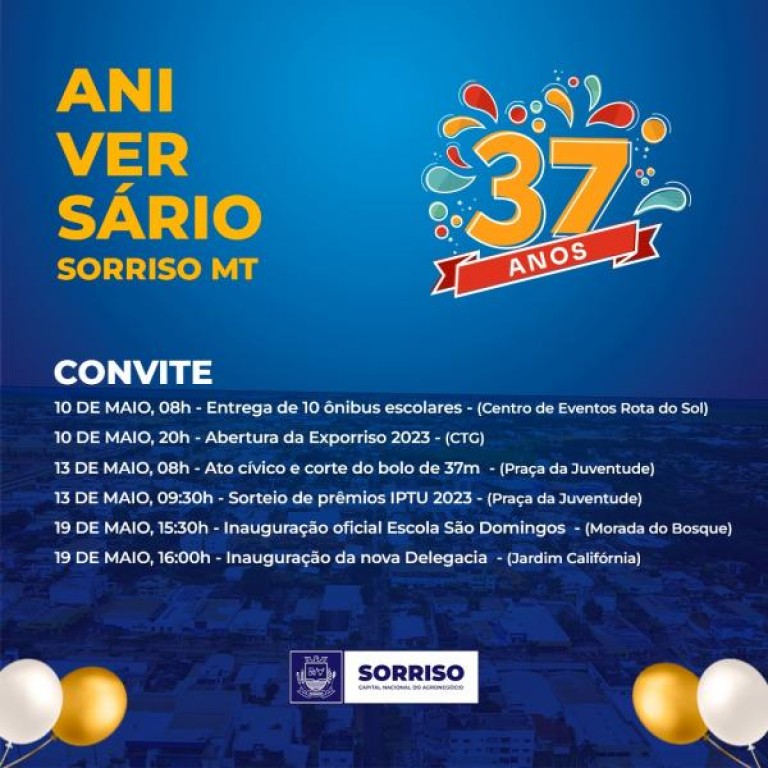 O sorteio dos três primeiros prêmios do IPTU, 2023 será logo após o ato cívico e corte do bolo de 37 metros, no sábado 13, às 9h30, na Praça da Juventude. Sendo o primeiro prêmio de R$ 30 mil em espécie, entre os contribuintes que imitiram a guia de arrecadação, exclusivamente via Internet, até 23/04/2023; 2º prêmio de R$ 30 mil, entre os contribuintes que efetuaram o pagamento do IPTU/2023 em cota única até 10/05/2023 e mais R$ 14 mil, entre os que estiverem em dia com o pagamento do IPTU 2023, ou seja com a primeira parcela paga.
