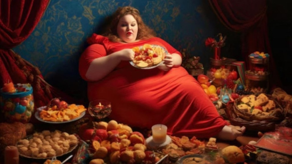 A truculenta virago, já gordíssima nos tempos de penúria, agora, na fartança das patuscadas cotidianas, não cabia mais em roupa alguma. Justificativa, mais que suficiente, para suas extravagâncias na modista, que passou a trabalhar quase que exclusivamente para ela e seus rebentos gordalhões. A seu guarda-roupa, antes de parcíssimas chitas, acrescentavam-se, a cada semana, mais e mais sedas e linhos, musselinas e brocados, crepes e veludos, em cortes extravagantes e gosto e cores duvidosos. Repetir roupa de missa aos domingos, jamais !