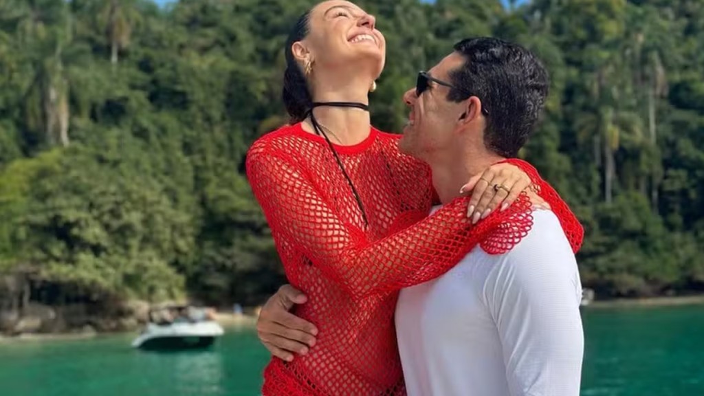 Após ficarem noivos, Isis Valverde e Marcus Buaiz curtem dia de sol: ‘Eu, ele, o mar’