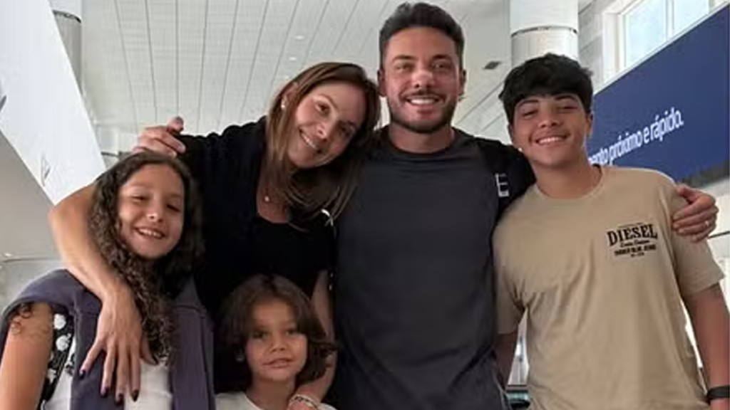 Nas redes sociais, Wesley exibiu cliques dele e da família, todos prontos para a viagem. Em outros cliques, ele ganha beijo da esposa e mostra cada filho em um lugar separado, já durante a viagem. Confira: