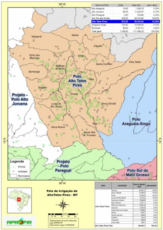 Em Mato Grosso já existem dois, o Polo de Irrigação Sustentável do Sul de Mato Grosso e o Polo de Agricultura Irrigada Araguaia-Xingu. Esses Polos têm trazido resultados significativos para os municípios envolvidos, aumentando a produtividade e promovendo o desenvolvimento local.