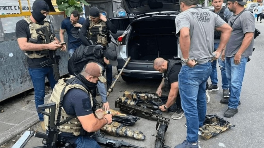 No total, 19 armas do arsenal roubado foram encontradas: oito pela Polícia Civil do Rio de Janeiro e nove pela Polícia Civil de São Paulo.