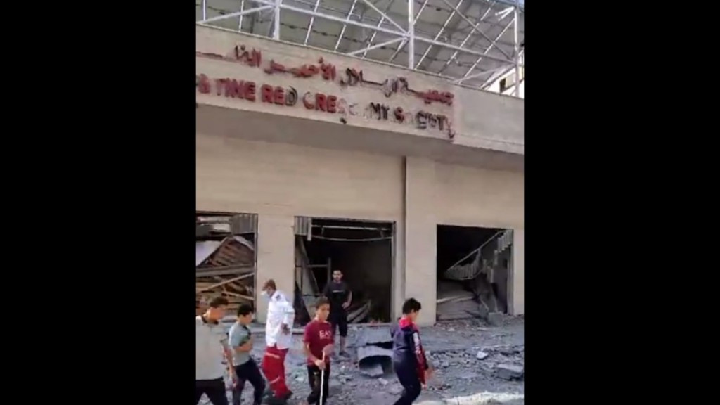 “Os indivíduos deslocados buscaram refúgio aqui [no hospital Al-Quds] por segurança, mas as forças de ocupação israelenses os ameaçam com bombardeios e exigem a evacuação. Estamos com vocês e não vamos abandonar”, escreveu o Crescente Vermelho nas redes sociais.