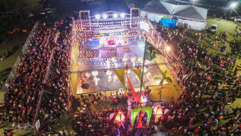 A animação tomou conta da última noite do Arraiá da Integração 2023. O evento, que começou na sexta-feira (02), atraiu cerca de 11 mil pessoas na rotatória do Paço Municipal, onde acompanharam os shows, as apresentações das quadrilhas juninas e dos grupos escolares do município.