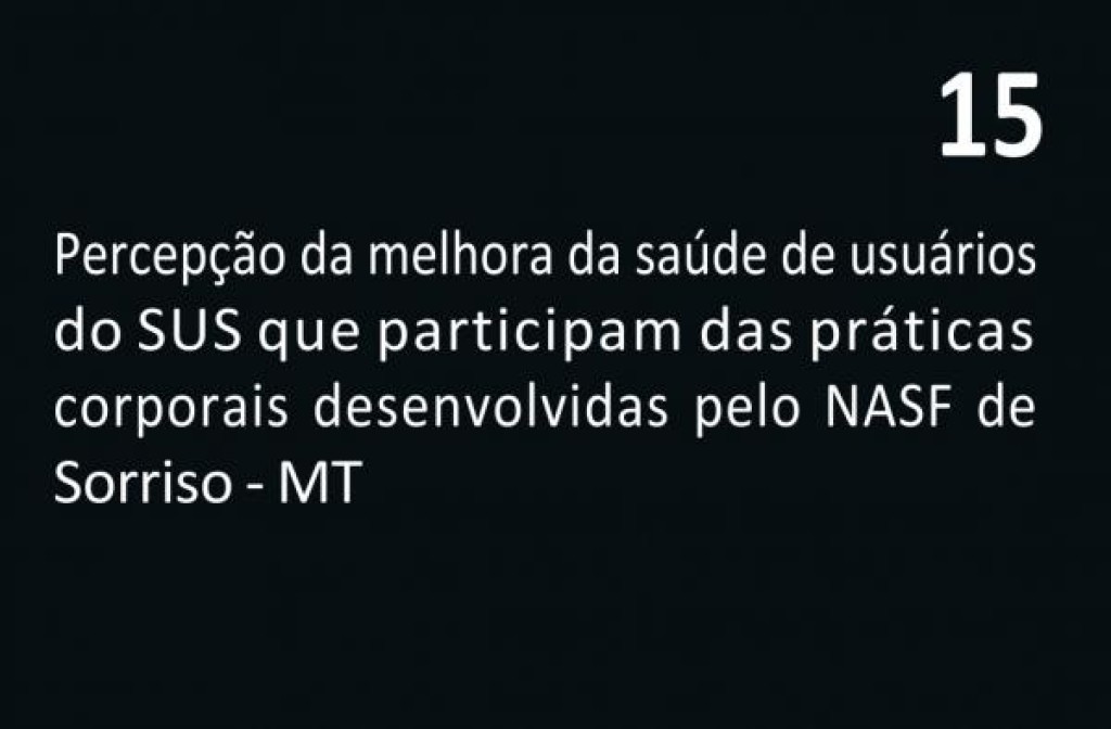 Introdução: Atualmente a sociedade mundial está em um momento histórico de morbidade, provocado pelo sedentarismo, os altos índices de doenças crônicas não transmissíveis que são responsáveis pela alta mortalidade que estão diretamente associadas à inatividade física. Objetivo: avaliar percepção da melhora da saúde de usuários do SUS que participam das práticas corporais desenvolvidas pelo NASF de Sorriso – MT. Metodologia: O trabalho caracterizou-se como uma pesquisa de campo de abordagem transversal, descritiva e quantitativa, para a análise de dados foram utilizados, frequência e porcentagem, a amostra foi constituída de 167 indivíduos, sendo: 143 mulheres e 24 homens. Resultados: verificou-se que a mulheres são a grande maioria envolvidas nas atividades de práticas corporais sendo 85,6% contra 14,4% são homens com idades variantes de 18 a 59 anos. Em relação a melhora da saúde após a entrada no projeto observou-se que 80,2% perceberam ter melhorado muito, enquanto 17,4 % observaram ter melhorado um pouco.