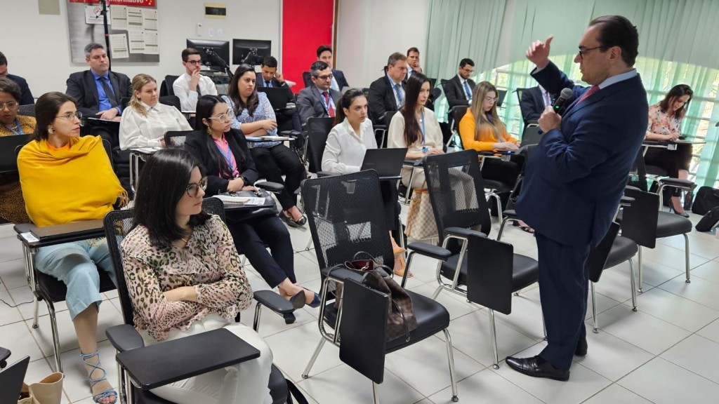 Na manhã desta segunda-feira (28 de agosto), os 25 novos juízes e juízas substitutos(as) de Direito que passaram a integrar o Poder Judiciário de Mato Grosso tiveram mais uma aula do Curso Oficial de Formação Inicial (Cofi 2023). Ao longo da manhã, o promotor de Justiça Antônio Sérgio Cordeiro Piedade, que integra o Ministério Público do Estado de Mato Grosso, falou sobre os aspectos práticos do Tribunal do Júri, apresentando uma visão geral do procedimento no Código de Processo Penal (CPP).