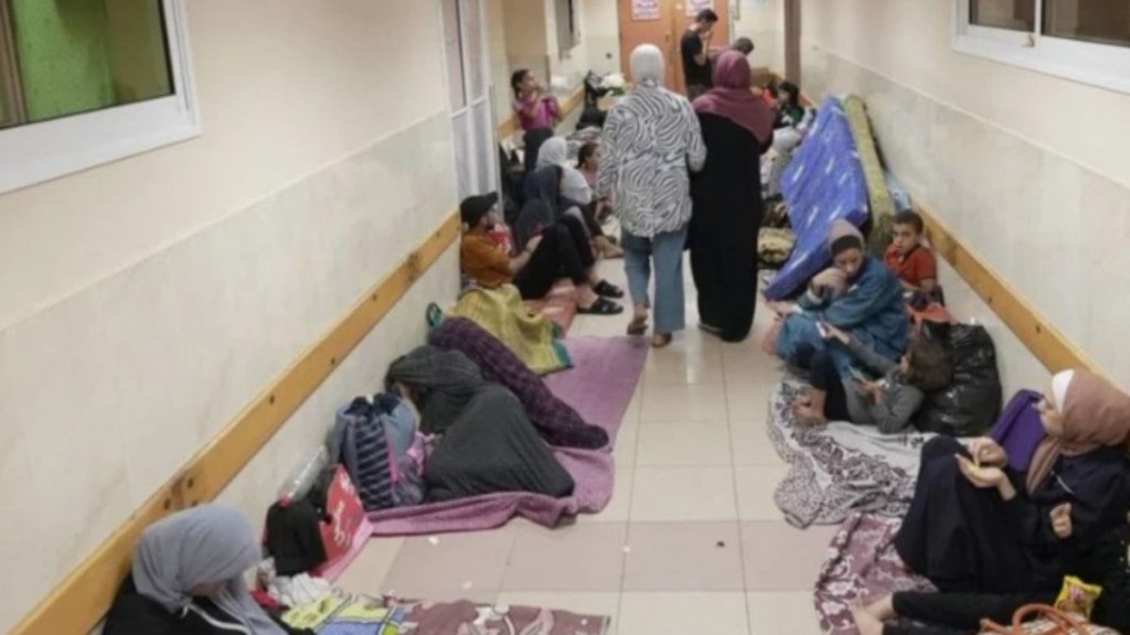Palestinos em corredor do Hospital Al-Shifa, o maior da Faixa Gaza