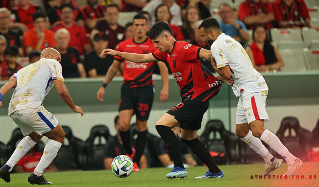 O Athletico somou apenas um ponto diante do Fortaleza, nesta quarta-feira (8), na Ligga Arena. Após sair atrás e buscar o empate logo em seguida, o Furacão encurralou o adversário na busca pela virada, mas não conseguiu balançar a rede novamente.
