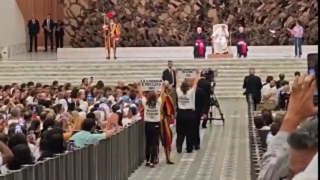 Após pouco mais de um mês de férias, o papa Francisco retomou nesta quarta-feira (7) suas audiências gerais no Vaticano. Desta vez, sua fala foi interrompida por um protesto de ativistas de direitos dos animais.