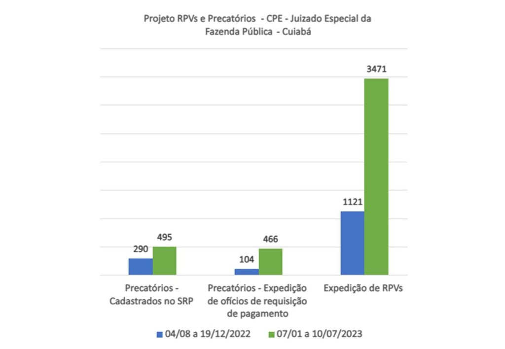 Por meio de um projeto-piloto junto ao Juizado Especial da Fazenda Pública da Comarca de Cuiabá, a Central de Processamento Eletrônico (CPE), ligada à Corregedoria-Geral da Justiça de Mato Grosso (CGJ-TJMT) deu celeridade na expedição das Requisições de Pequeno Valor (RPV) e precatórios. Atuando desde agosto de 2022 no Juizado, o número de expedições destes documentos triplicou. A iniciativa deu tão certo que foi disseminada para outras unidades judiciais de Mato Grosso.