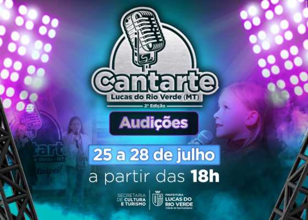 Chegou a hora dos candidatos do Cantarte 2023 mostrarem o seu talento nas audições. A etapa classificatória para a grande final será realizada nos dias 25, 26, 27 e 28 de julho, na sede da Secretaria de Cultura e Turismo, a partir das 18h.