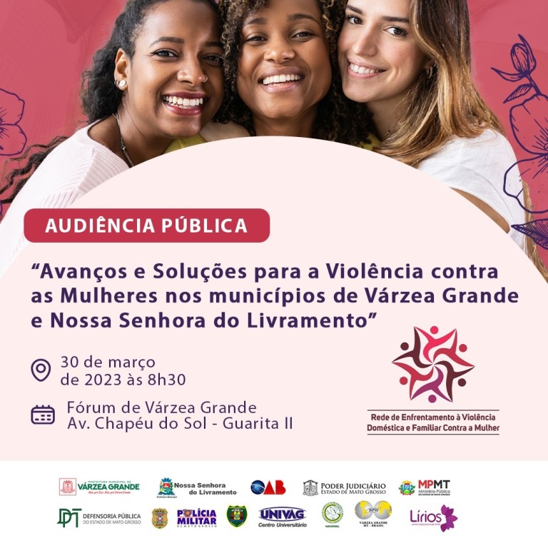 Rede de Enfrentamento à Violência Doméstica e Familiar contra Mulheres de Várzea Grande e Nossa Senhora do Livramento irá discutir avanços e soluções para violência contra as mulheres nos dois municípios. Os debates ocorrerão dia 30 de março (quinta-feira), no Fórum de Várzea Grande.