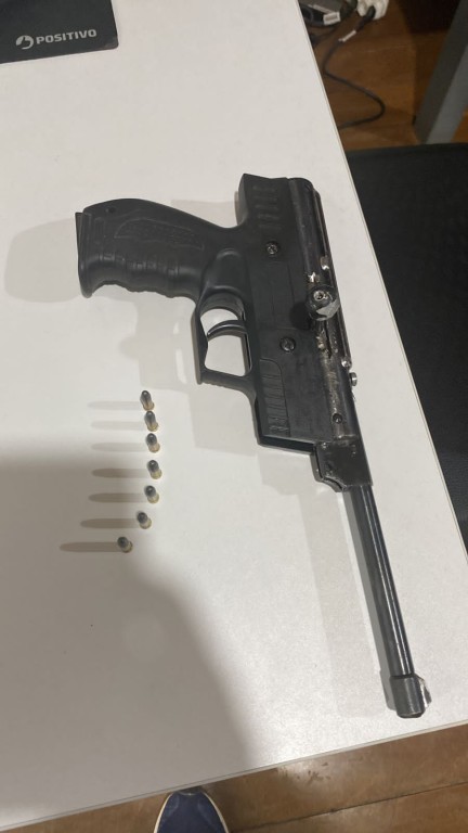 A ação para cumprimento do mandado, resultou também na apreensão de uma de pressão modificada para arma de fogo de calibre 22.