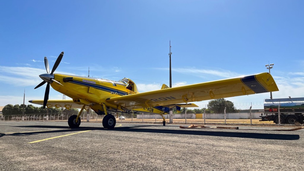 A aeronave disponibilizada em Primavera do Leste tem reservatório de 3 mil litros de água e ficará no município até o fim do período proibitivo do uso do fogo, no dia 31 de outubro.