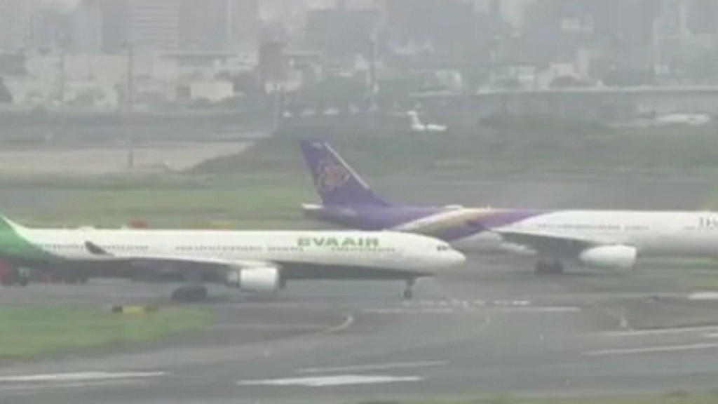 A colisão prejudicou a asa do avião da Tailândia, o que impediu o funcionamento. Segundo a Thai Airways informou à agência Reuters, a aeronave estava se prestes a decolar quando a ponta da asa direita bateu com a traseira de um avião da Eva Air.