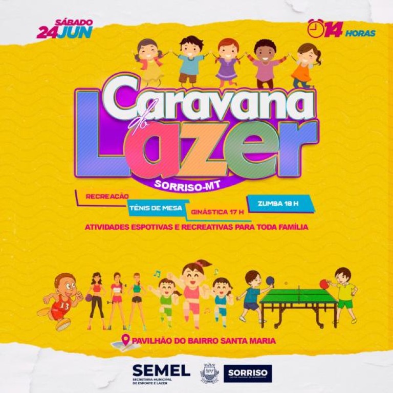 A Prefeitura, através da secretaria de Esporte e Lazer, convida toda a população para participar da Caravana no próximo sábado. Um dia diferente pode fazer a diferença na vida de muitas famílias.