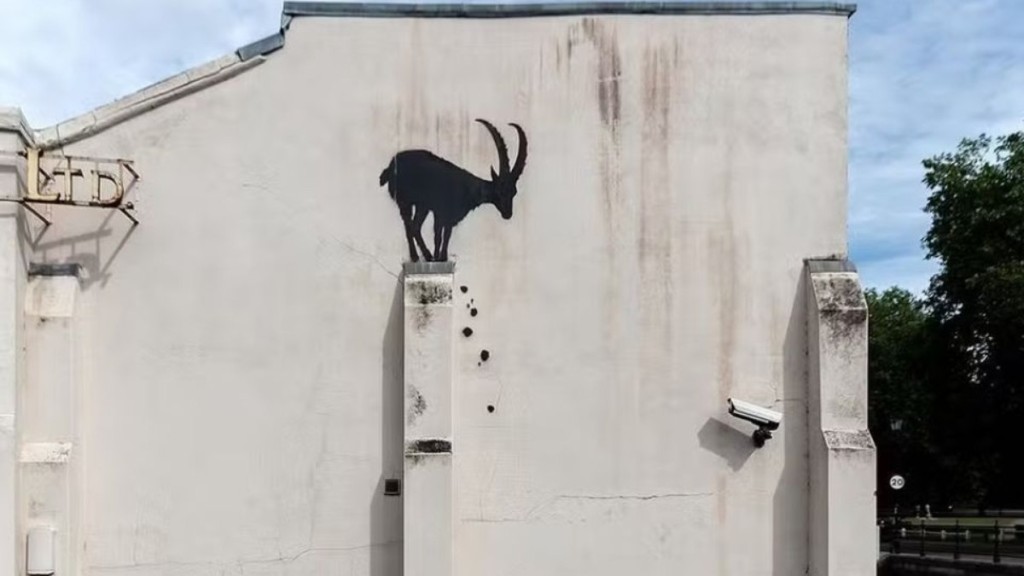 A postagem nas redes sociais conta apenas com a foto do desenho de uma cabra em cima de um “precipício”. Além disso, o artista também posicionou uma câmera de vigilância apontada para a obra, e alguns internautas disseram que isso fazia parte da crítica de Banksy.