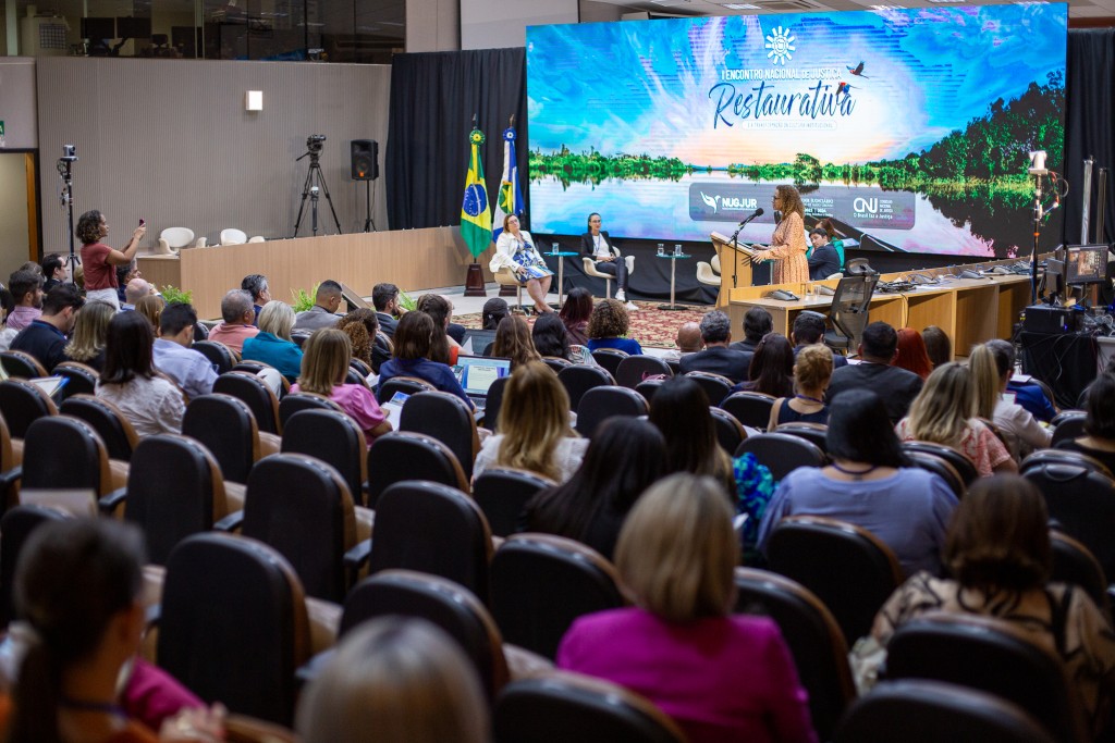 No primeiro dia, subiram ao palco magistrados dos estados de Goiás, Rio de Janeiro, Rondônia. Profissionais da educação e da saúde de Mato Grosso também compartilharam seus cases de sucesso.