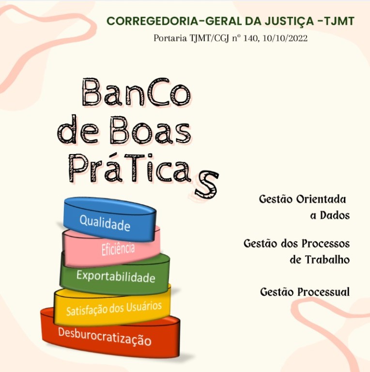 #ParaTodosVerem – Esta matéria possui recursos de texto alternativo para promover a inclusão das pessoas com deficiência visual. Descrição da Imagem 1– Arte colorida em formato quadrado. Na parte superior está o texto: Corregedoria-Geral da Justiça – TJMT. Portaria TJMT/CGJ Nº 140, 10/10/2022. no canto esquerdo está escrito ‘Banco de Boas Práticas’ e abaixo, cinco blocos coloridos empilhados, cada um com um nome: qualidade, eficiência, exportabilidade, satisfação dos usuários e desburocratização. Ao lado o texto: Gestão Orientada a dados – Gestão dos Processos de Trabalho – Gestão Processual. Imagem 2 – Foto colorida da juíza substituta. Ela usa toga preta. É uma mulher branca, de cabelos escuros. Ela Sorri para a foto.