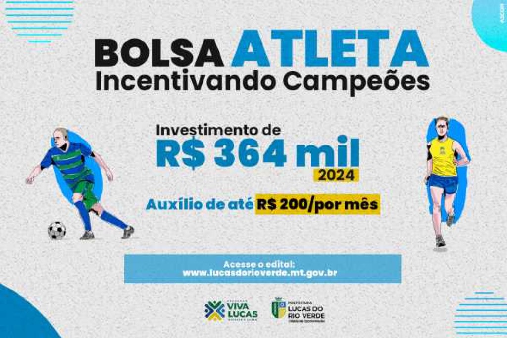 Confira o Edital do Bolsa Atleta: https://www.lucasdorioverde.mt.gov.br/arquivos/noticias/12615/edital_bolsa_atleta_2024.pdf