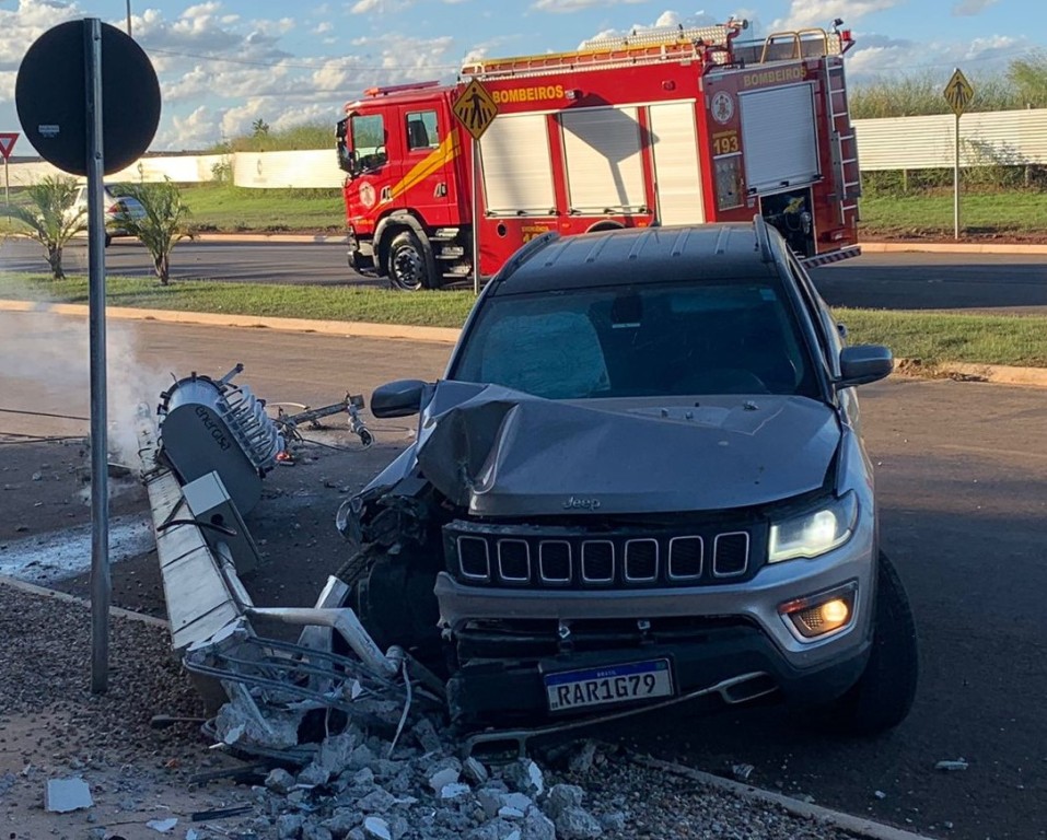 No local, os bombeiros constataram que um veículo havia saído da pista e colidido com um poste de energia que possuía um transformador. O impacto derrubou o poste, que ficou levemente inclinado sobre o veículo. O poste estava energizado e em contato com o asfalto, causando fagulhas devido ao curto-circuito resultante da queda.