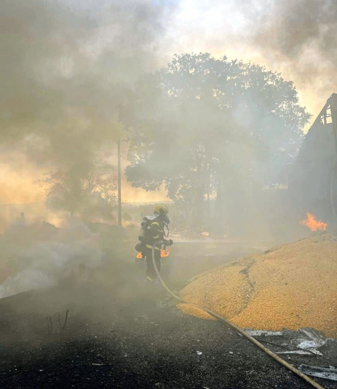 Bombeiros combatem incêndio em caminhão carregado de milho na BR-364