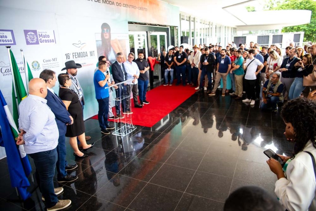 O presidente da Assembleia Legislativa de Mato Grosso (ALMT), deputado Eduardo Botelho (União), participou da cerimônia de abertura da 16ª Femoda-MT, no dia 23, no Cenarium Rural, em Cuiabá. A previsão era de o evento, que terminou no dia 25, movimentar cerca de R$ 50 milhões em negócios na maior feira de calçados, confecções e acessórios do Centro-Oeste.
