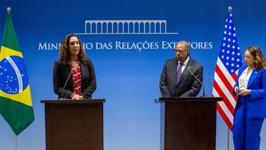 Anielle Franco e Brian A. Nichols, secretário assistente de Estado para Assuntos do Hemisfério Ocidental dos Estados Unidos