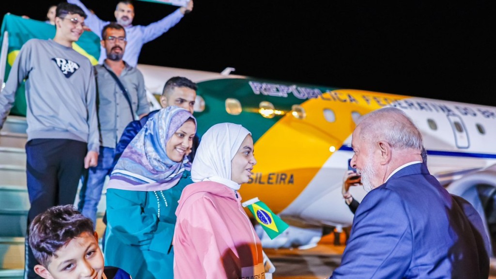 Lula recebendo brasileiros de Gaza em Brasília