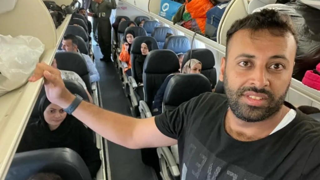 Brasileiros que deixaram Gaza dentro do avião rumo ao Brasil