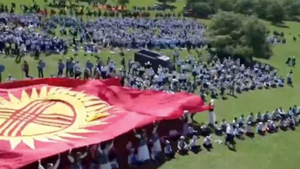 Caminhão de sorvete desce uma ladeira e deixa crianças feridas durante um festival no Quirguistão, país da Ásia Central. Na imagem, a bandeira do país em vermelho e amarelo