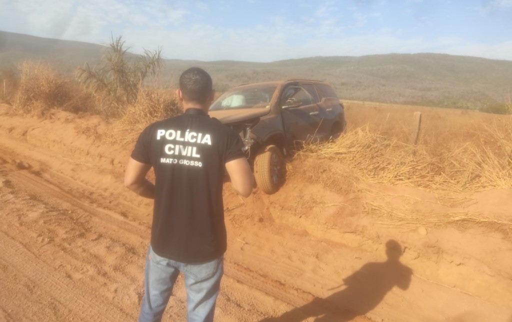 A caminhonete, furtada no dia 22 de julho dentro da garagem de um prédio, no bairro Santa Marta, em Cuiabá, foi localizado após um acidente de trânsito na Rodovia MT-199, na região da Gleba Jatobá, em que o condutor do veículo fugiu do local.