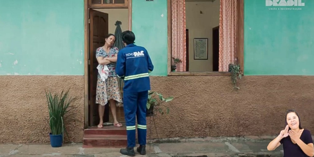 Vestido com um uniforme profissional, com a inscrição Novo PAC nas costas, e com um capacete de obra, o homem revela que conseguiu um emprego, com carteira assinada, em uma obra do PAC. “Graça alcançada, Senhor!”, exclama a mulher, que em seguida chama a menina. Um abraço apertado entre pai e filha é a imagem final do vídeo.