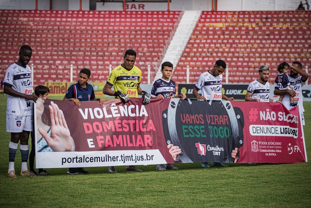 As faixas continuarão sendo mostradas pelas equipes que disputam o campeonato até a grande final. Elas ganham reforço ainda de uma faixa que traz os números para denúncia: o 180 e 190, uma solicitação da juíza Ana Graziela Vaz de Campos, titular da 1ª Vara de Violência Doméstica e Familiar contra a Mulher de Cuiabá.