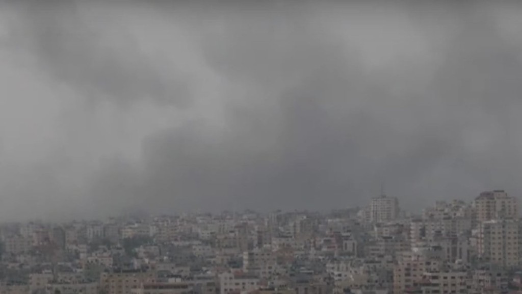 Contraofensiva israelense na Faixa de Gaza, na manhã desta segunda-feira (9)