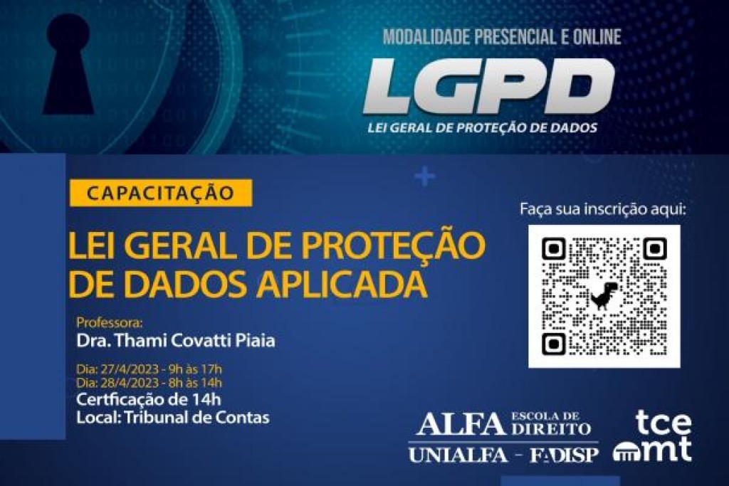 O Tribunal de Contas de Mato Grosso (TCE-MT) realiza, nesta quinta (27) e sexta-feira (28), capacitação sobre a aplicação da Lei Geral de Proteção de Dados (LGPD). O encontro será no auditório Liu Arruda, das 9h às 17h no primeiro dia, e das 8h às 14h no segundo, garantindo certificação de 14h.