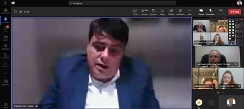 #Paratodosverem. Esta matéria possui recursos de texto alternativo para promover a inclusão das pessoas com deficiência visual. Primeira imagem: Print de tela de uma aula da capacitação sobre a LGPD. Na imagem aparece o instrutor do curso, o tabelião Rodrigo Reys Cyrino. Ele usa um terno azul e camisa branca.