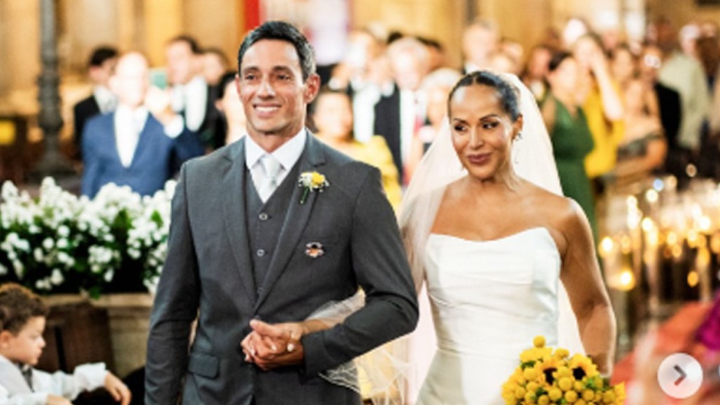 A cantora Carla Cristina, de 48 anos, compartilhou nesta sexta-feira (12), cliques do casamento oficial com o atleta e treinador de tênis Alexandre Aragon, de 42. A cerimônia aconteceu na noite de quinta-feira (11), na Basílica Nossa Senhora da Conceição da Praia, em Salvador, e terminou com um beijão cinematográfico dos noivos.