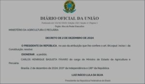 Com a exoneração, a suplente Margareth Buzetti (PSD) deixa a vaga no Senado por 24 horas, enquanto o Ministério da Agricultura e Pecuária (MAPA) será comandado temporariamente pelo secretário executivo Irajá Lacerda.