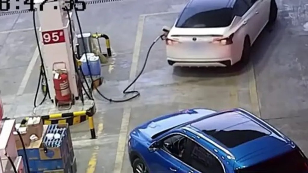 Um motorista saiu dirigindo seu carro de um posto de gasolina com a bomba de combustível ainda conectada ao carro enquanto abastecia e causou uma explosão em um posto em Xiangtan, na província de Hunan, na China, no dia 1º de setembro.