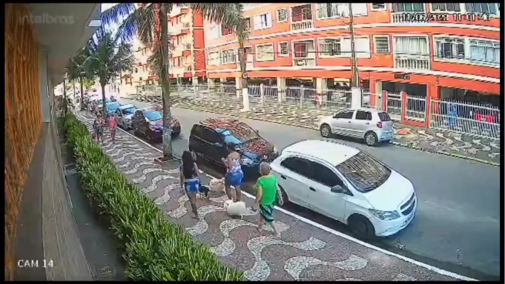 As câmeras de segurança registraram o acidente por volta das 11h, na Rua Monteiro Lobato, no bairro Ocian.